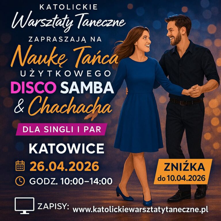 🎶 Potańcówka w Katowicach! 💃🕺dla singli 🙋 i par 👩❤️👨 📅 11.04.2026 | ⏰ 18:00–24:00📍 Sala w Parafii Podwyższenia Krzyża św. i św. Herberta, ul. Barlickiego 2 w Katowicach Zapraszamy na wyjątkową zabawę taneczną w gronie osób o podobnych wartościach 💒 Wieczór poprowadzi wodzirej & DJ Krzysztof Borgiel – charyzmatyczny animator, który zadba o świetną…