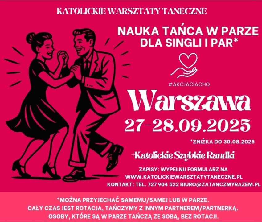 Po warsztatach w niedzielę 28.09.2025 w godz. 16-18 zapraszamy na Katolickie Szybkie Randki (od 22-50lat)
