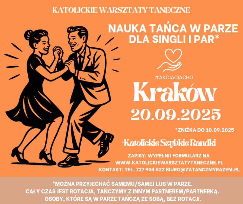 Po warsztatach w sobotę 27.09.2025 w godz. 15-17 można wziąć udział w dodatkowo w Katolickich Szybkich Randkach (od 22-50lat)