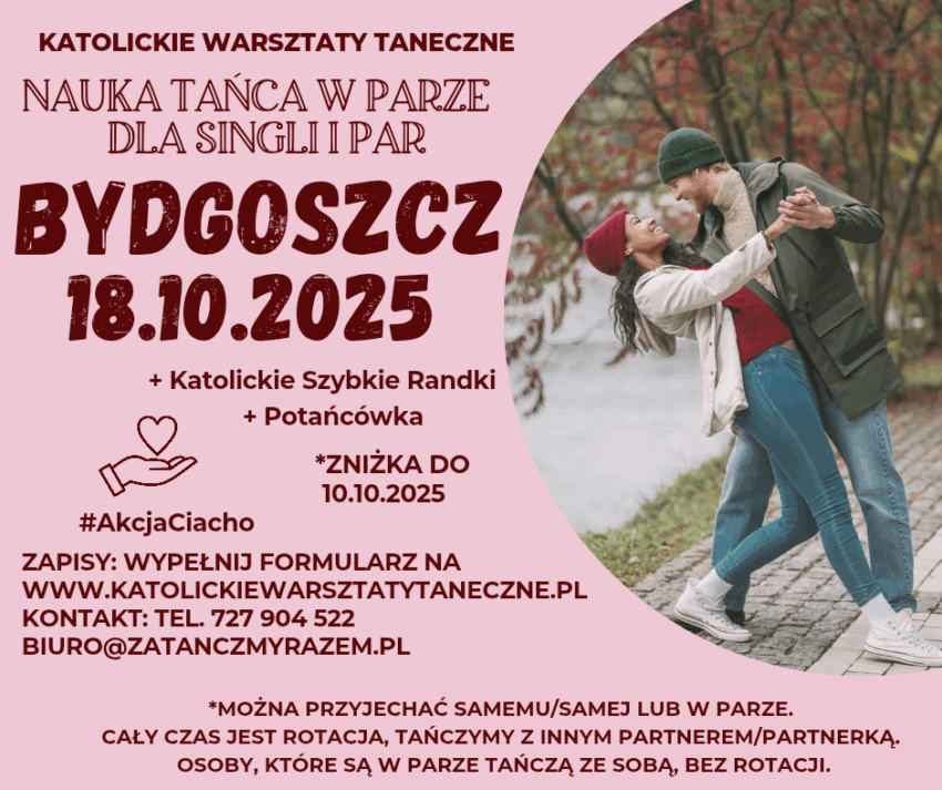Po warsztatach w sobotę 18.10.2025 w godz. 15-17 można wziąć udział dodatkowo w Katolickich Szybkich Randkach (od 22-50lat)