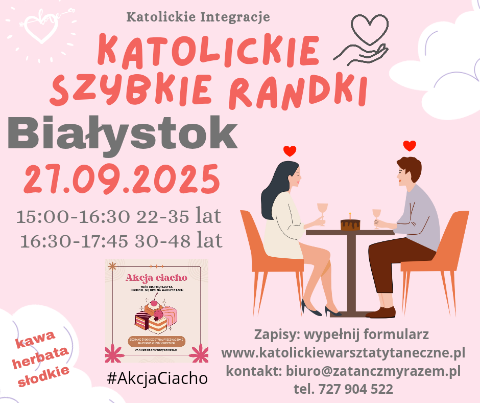 Po warsztatach w sobotę 27.09.2025 w godz. 15-17 można wziąć udział w dodatkowo w Katolickich Szybkich Randkach (od 22-50lat)