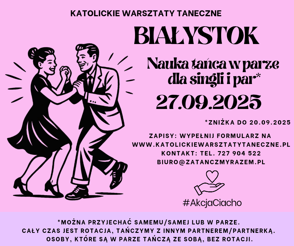 Zapraszamy również do udziału w Katolickich Warsztatach Tanecznych w tym samym dniu 27.09.2025 w godz. 10-14