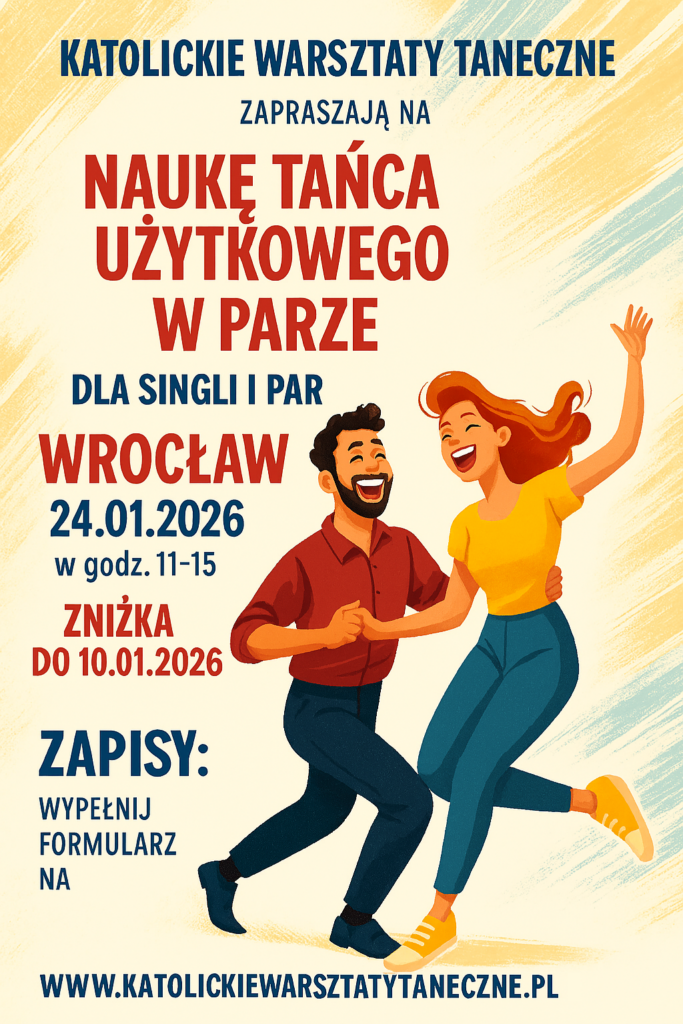 Zapraszamy również do udziału w Katolickich Warsztatach Tanecznych w dn. 24.01.2026 w godz. 11-15 Taniec Użytkowy Zapisy: 👉