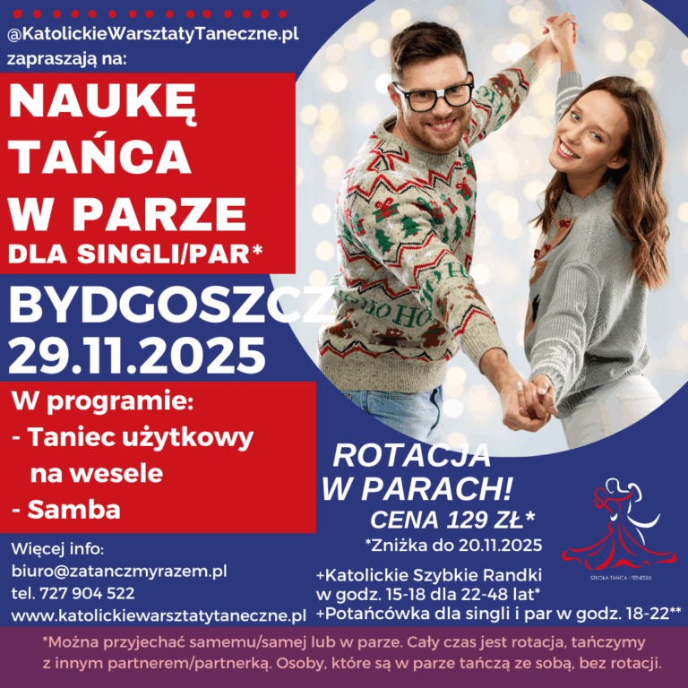 ❣️ Terminy PAŹDZIERNIK 2025 ❣️Warsztaty Taneczne dla Katolickich Singli i Par 💃🕺 💒 Wartości. 💞 Relacje. 🎶 Integracja 💫 Co Cię czeka? 📍 Gdzie i kiedy? Wybierz miasto, termin i styl, który Ci pasuje — a potem… po prostu zatańcz! 📍Miasto 📅 Termin 💃 Wydarzenie 🔗 Link 📍Białystok 18.10.2025 Warsztaty Taneczne👉 https://forms.gle/sbekuVL9B9j52BJe7 📍Białystok 18.10.2025 Katolickie…